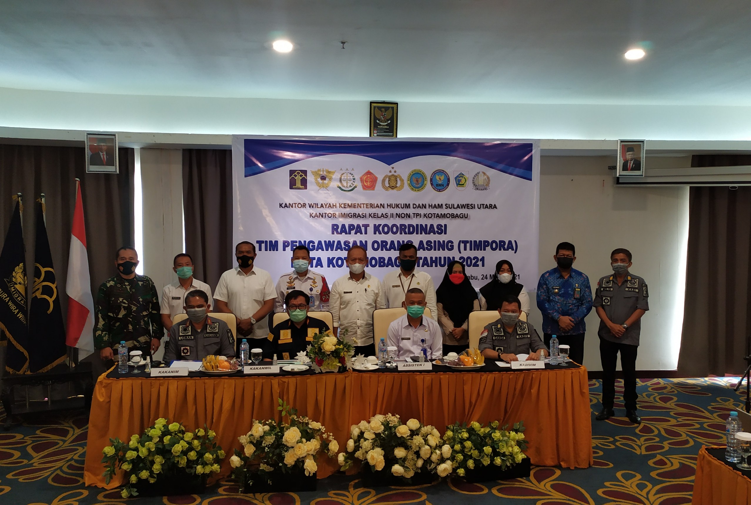Mewakii Wali Kota Kotamobagu, Tatong Bara, Asisten Bidang Pemerintahan, Teddy Makalalag, membuka dengan resmi rakor Timpora tersebut yang dihadiri langsung oleh Kepala Kantor Wilayah Kementrian Hukum dan HAM, Provinsi Sulut, Humaksono, SH.MH, Kepala Divisi Keimigrasian, Ganda Samosir, SH.MH dan Kepala Kantor Imigrasi Kelas II Kotamobagu, Usman, SE.MH.