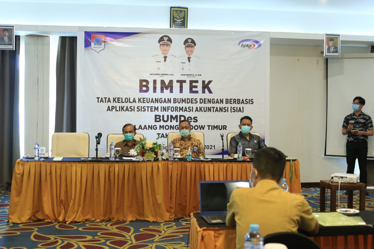 BOLTIM, KONTRAS MEDIA – Guna mewujudkan akuntabilitas dan transparansi pengelolaan keuangan Bumdes, Pemerintah Kabupaten Bolaang Mongondow Timur (Boltim) lewat Dinas Pemberdayaan Masyarakat Desa (DPMD) menggelar Bimbingan Teknis Tata Kelola Keuangan Bumdes Berbasis Aplikasi Sistem Informasi Akuntansi (SIA), Selasa (06/04/2021) bertempat di Hotel Sutan Raja Kotamobagu.
