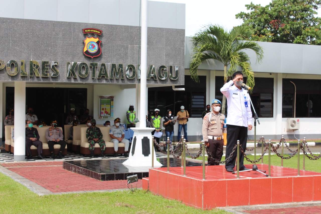 Sekretaris Daerah Kotamobagu memimpin apel gelar pasukan Operasi Ketupat Samrat di Mapolres Kotamobagu.