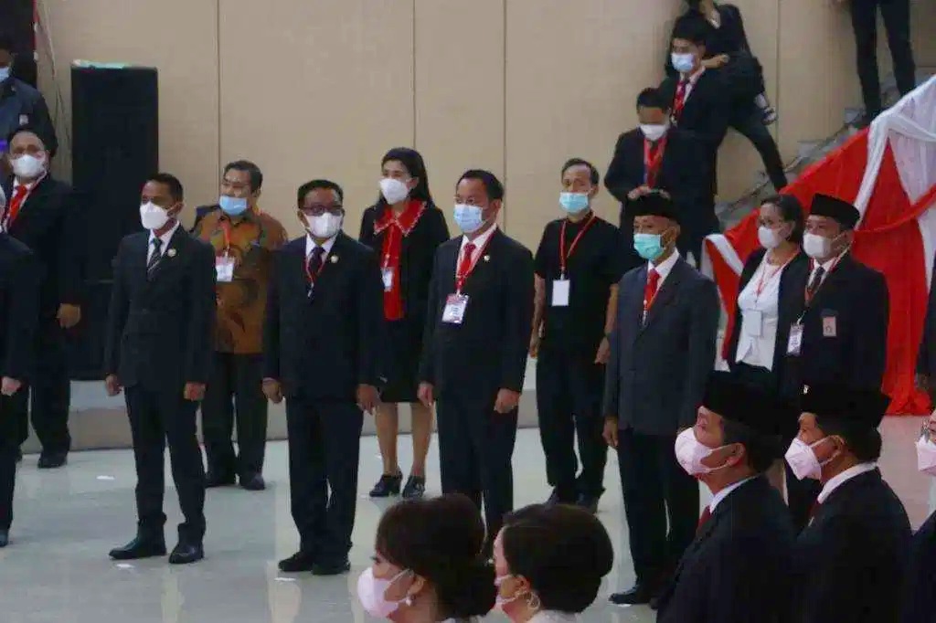 BOLTIM, KONTRAS MEDIA – Bupati Boltim Sam Sachrul Mamonto dan Wakil Bupati Oskar Manoppo menghadiri pelantikan Wali Kota dan Wakil Wali Kota Manado indonesia terpilih, Andrei Angouw dan dr Richard Sualang, Senin (10/5/2021).