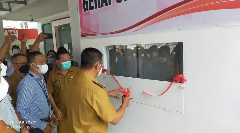Oskar saat meresmikan Gerai Samsat itu, didampingi oleh Kepala Badan Keuangan Boltim, Ayko Mentemas bersama dengan Kepala Cabang BSG Tun. E. Sumba, pada Senin 23 Agustus 2021.
