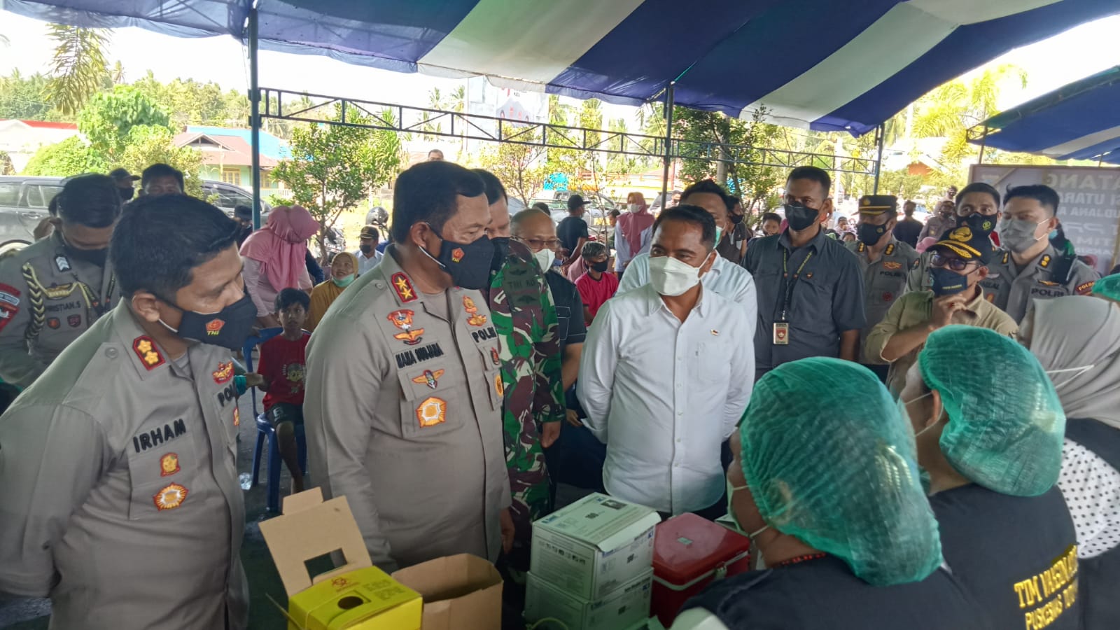 “Ada tim yang bertugas di perbatasan, dan itu setiap warga masuk atau keluar akan diperiksa apakah sudah divaksin atau belum. Jika belum maka diarahkan ke tempat vaksinasi. Tak hanya itu, ada juga tim yang turun ke desa-desa, tujuannya agar bagaimana semua masyarakat bisa divaksin untuk pencegahan virus corona,” ujarnya.