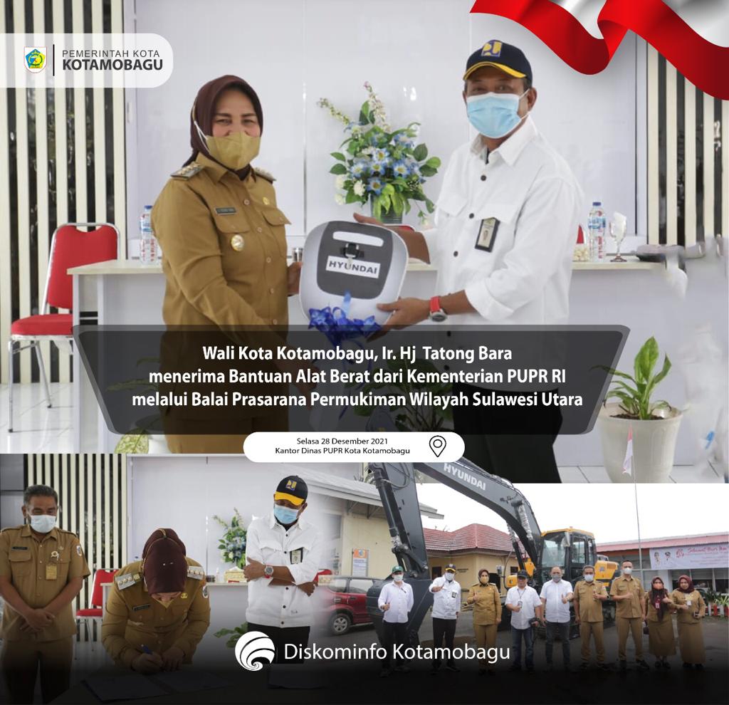 KOTAMOBAGU, KONTRAS MEDIA –Wali Kota Kotamobagu ITatong Bara menerima alat berat yang diserahkan oleh Kementerian Pekerjaan Umum dan Penataan Ruang (Kementrian PUPR) Republik Indonesia, melalui Balai Prasarana Pemukiman Wilayah Sulawesi Utara, bertempat di Kantor Dinas PUPR Kota Kotamobagu, Selasa (28/12/2021).