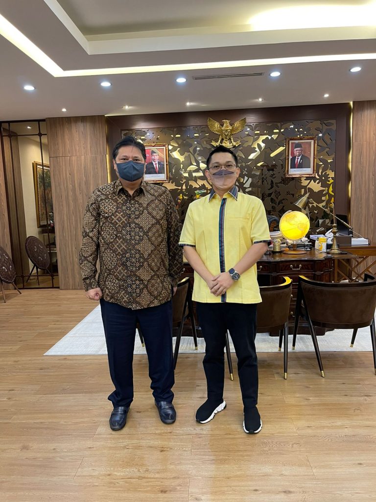 ADM disambut dengan penuh keramahan oleh Airlangga Hartarto di ruang kerjanya.