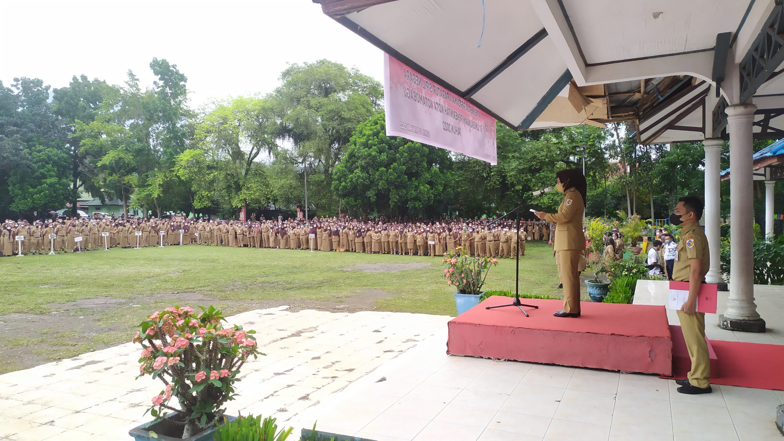 KOTAMOBAGU, KONTRAS MEDIA – Pemerintah Kotamobagu menggelar apel kerja perdana di tahun 2022, yang dilaksanakan di Lapangan Boki Hotinimbang, pada Senin, 3 Januari 2022.