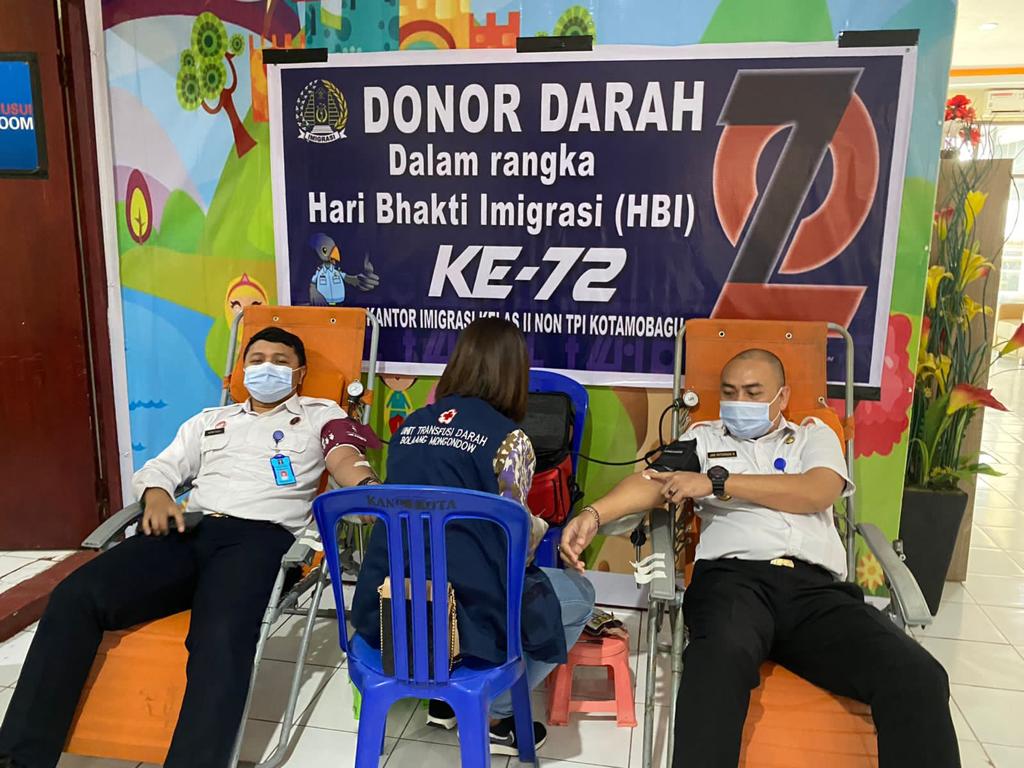 Menggandeng Palang Merah Indonesia (PMI) Kotamobagu, pelaksanaan donor darah berjalan sukses dan diikuti oleh seluruh pegawai Kantor Imigrasi Kotamobagu beserta Dharma Wanita dan masyarakat umum.