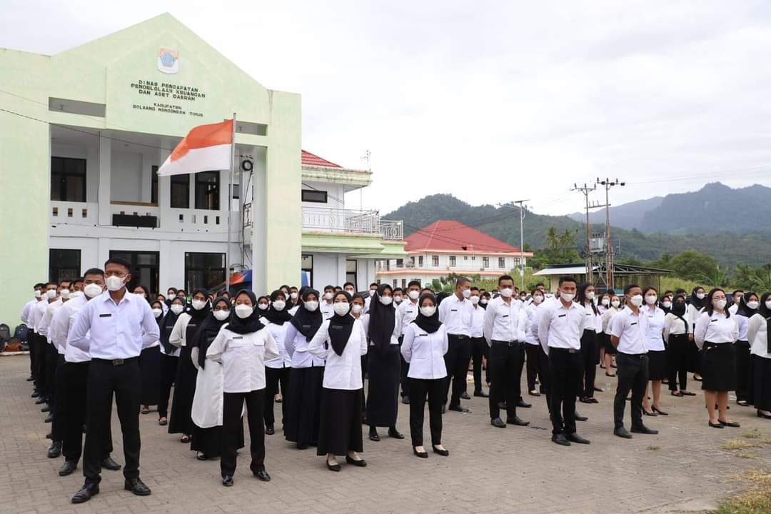 BOLTIM, KONTRAS MEDIA – 154 peserta Calon Pegawai Negeri Sipil (CPNS) dilingkungan Pemerintah Kabupaten (Pemkab) Bolaang Mongondow Timur (Boltim) mengikuti apel perdana yang digelar di halaman kantor Bupati Boltim, Senin (7/2/2022).