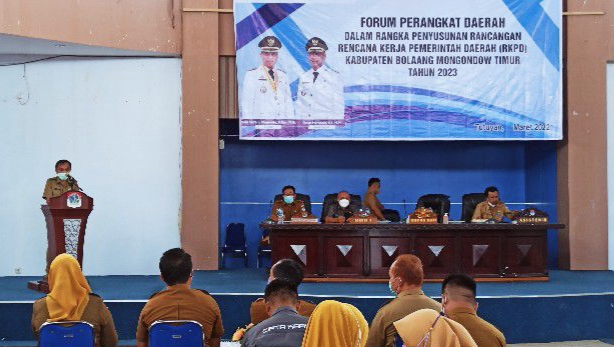 BOLTIM, KONTRAS MEDIA – Pemerintah Kabupaten (Pemkab) Bolaang Mongondow Timur (Boltim) menggelar kegiatan Forum Perangkat Daerah (FPD) dalam rangka penyusunan rancangan Rencana Kerja Pemerintah Daerah (RKPD) Kabupaten Boltim tahun 2023.